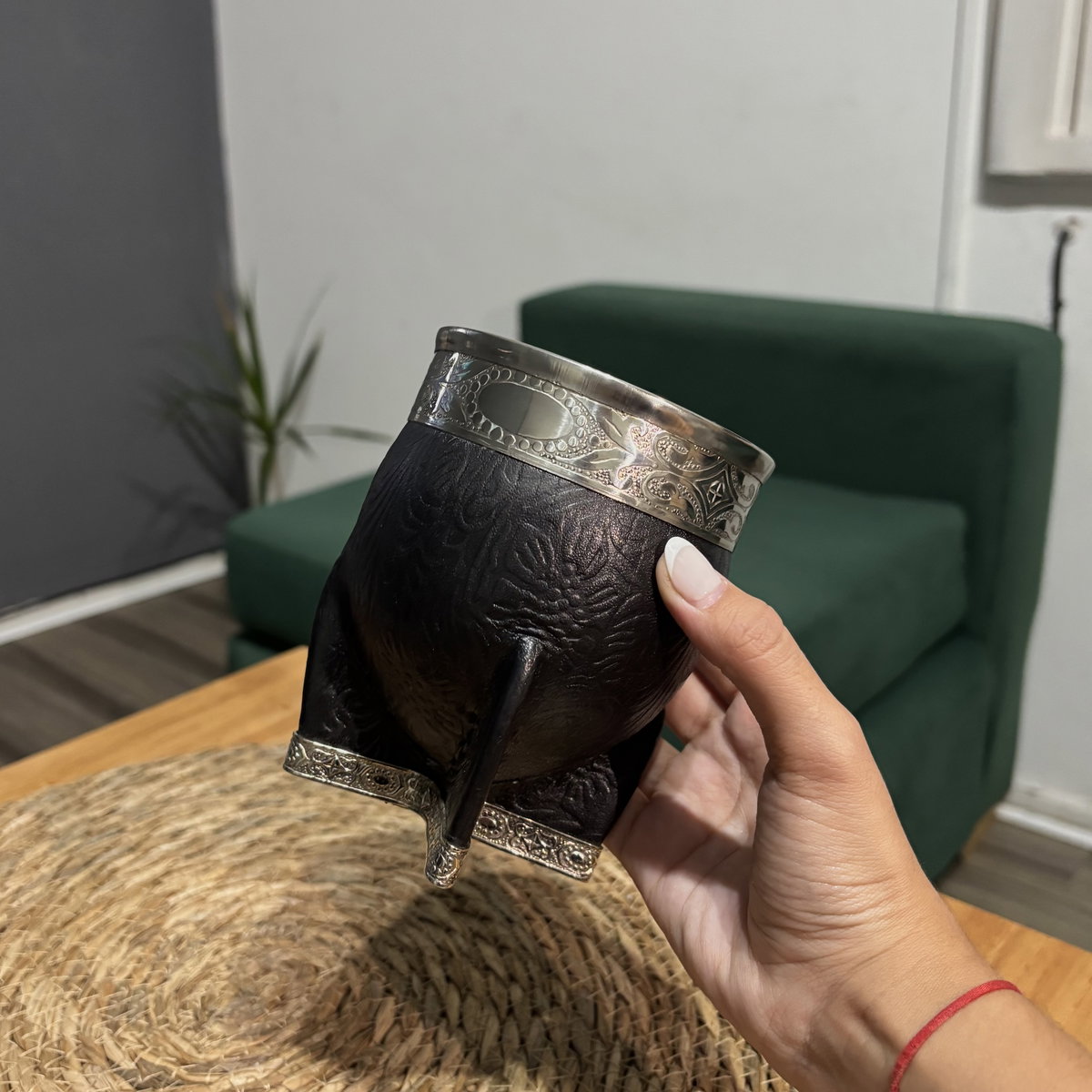 IMPERIAL DE CALABAZA, VIROLA Y BASE DE ALPACA, CUERO CROCO.